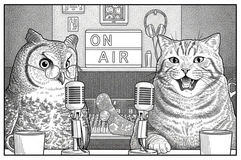Owl would likely have been a judge had he not gone into podcasting. His cohost, Sassy Cat, not only keeps him honest but also punches above her weight.